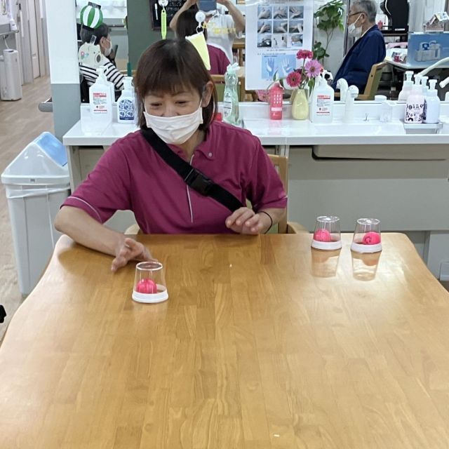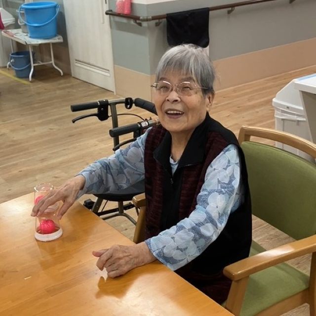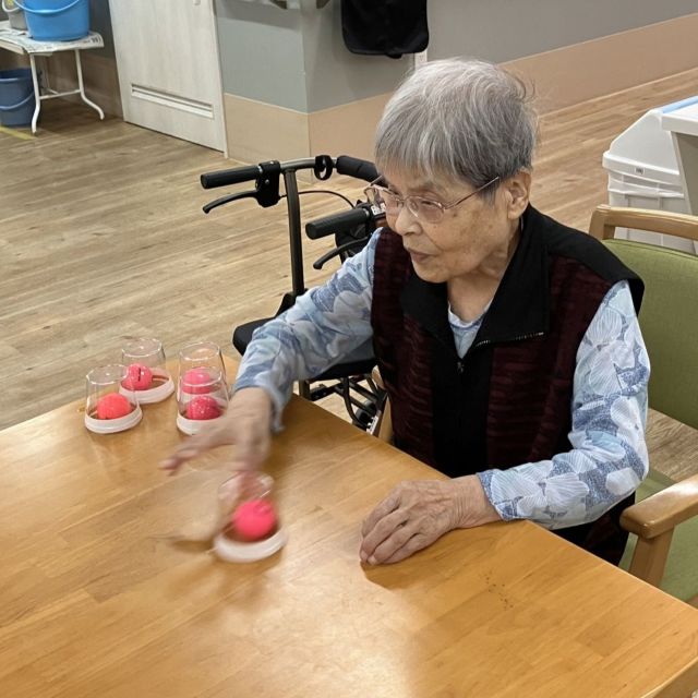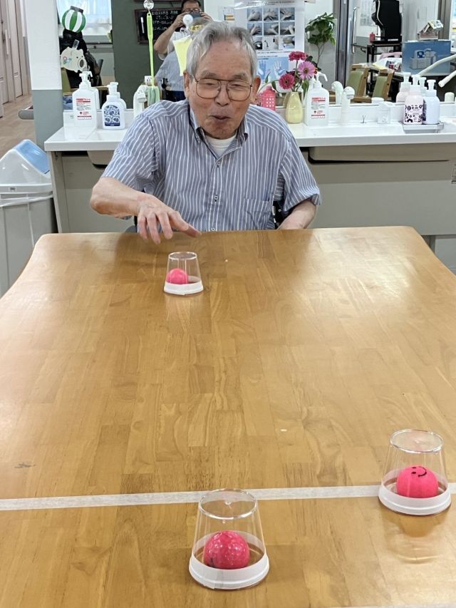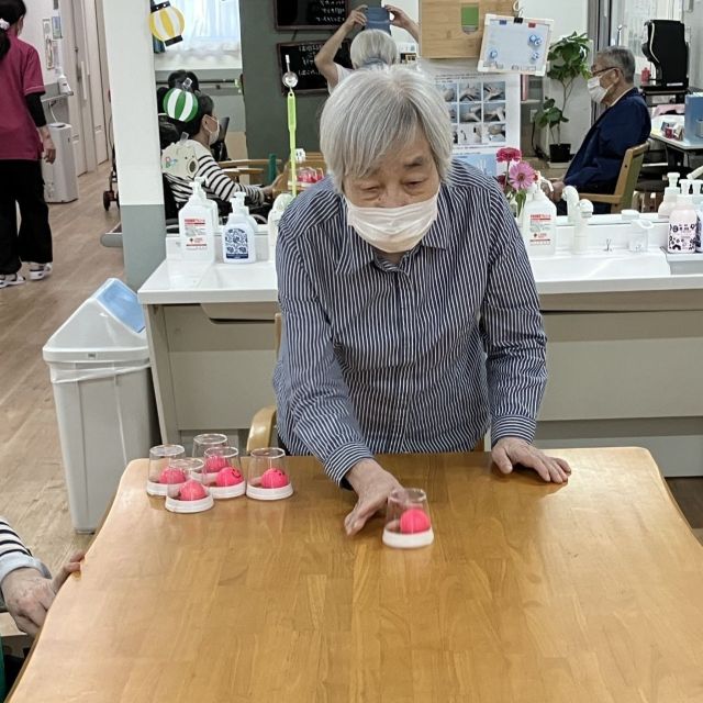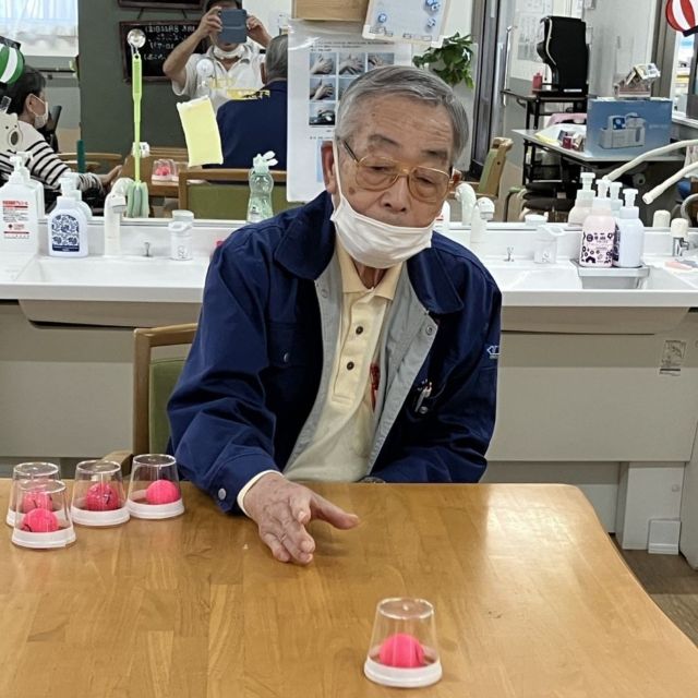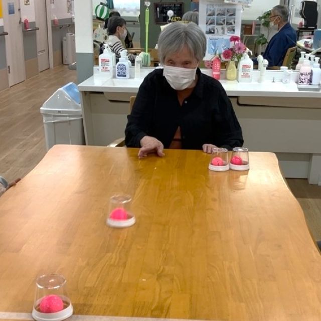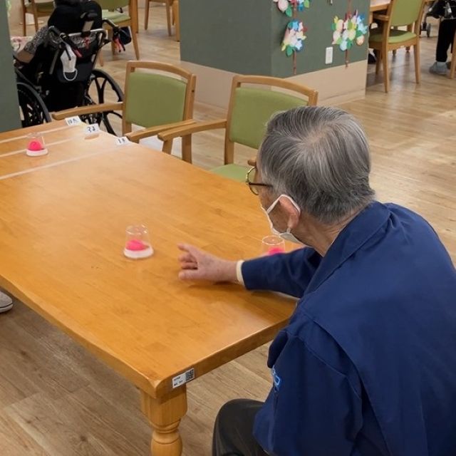 それで、1階食堂に残った2階の入居者様中心に、コロコロチキンゲームを久々に行いました。