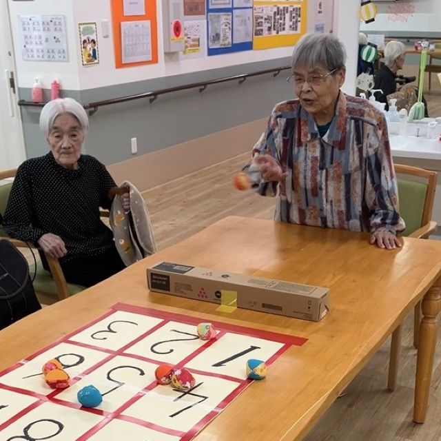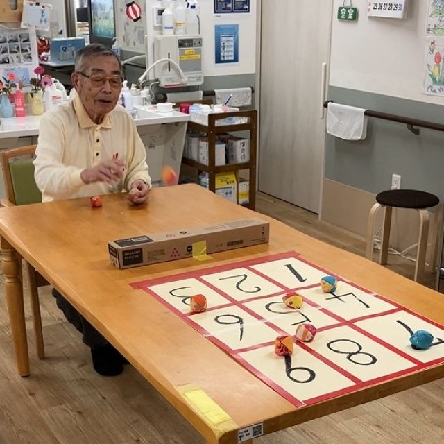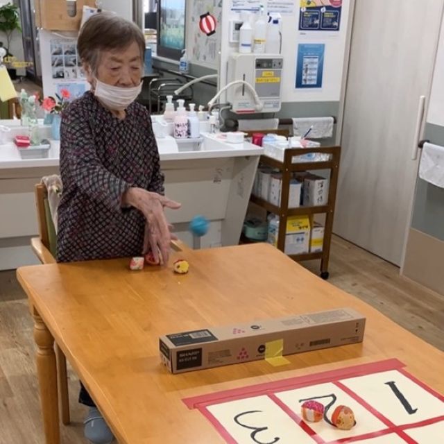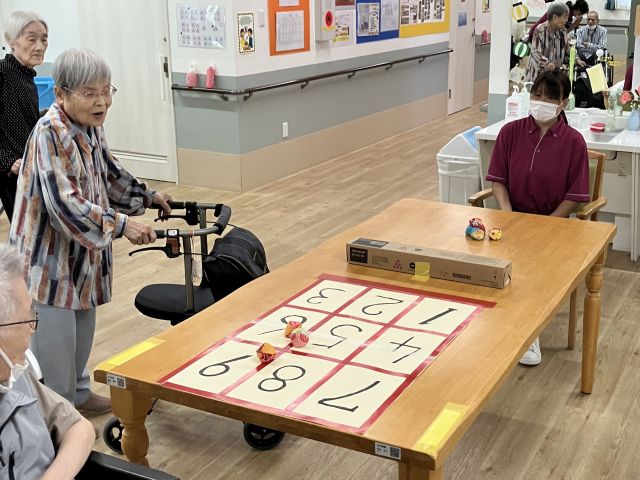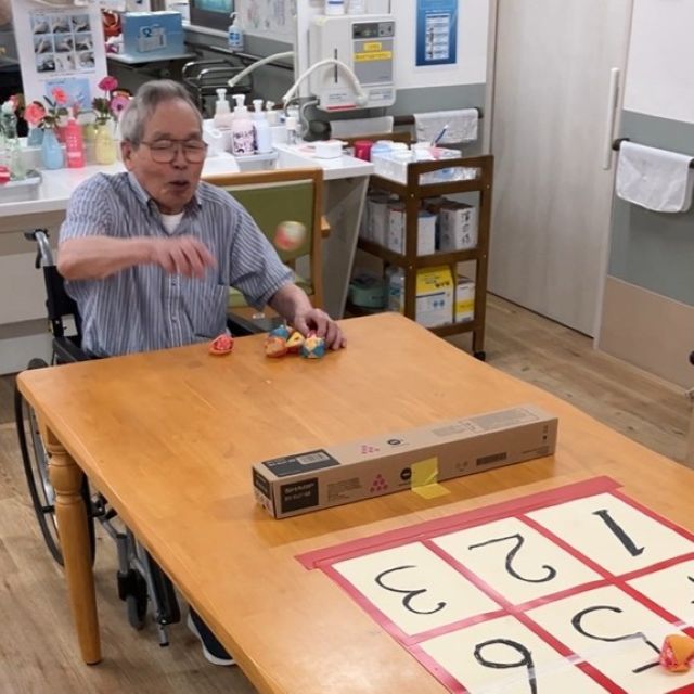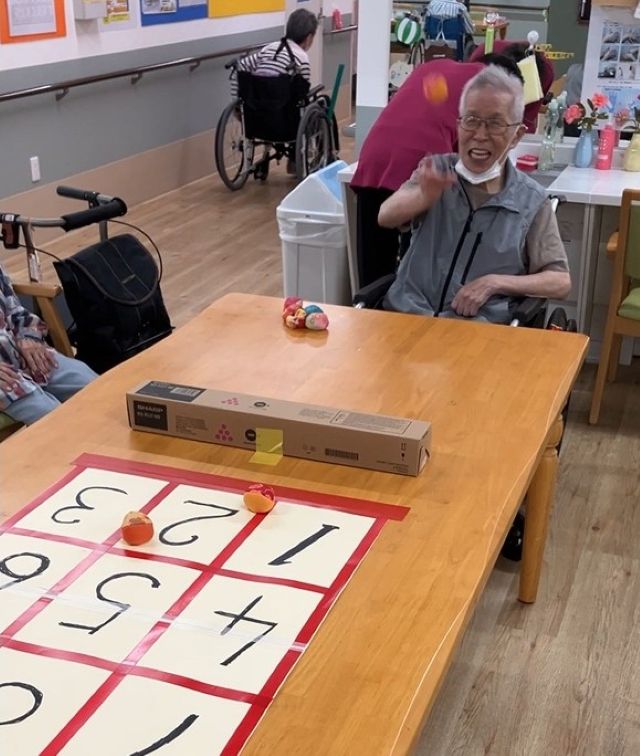昨日に続き、テーブルゲームを実施しました。今日はおじゃみを使ってのストラックアウト。熱い戦いが繰り広げられました。