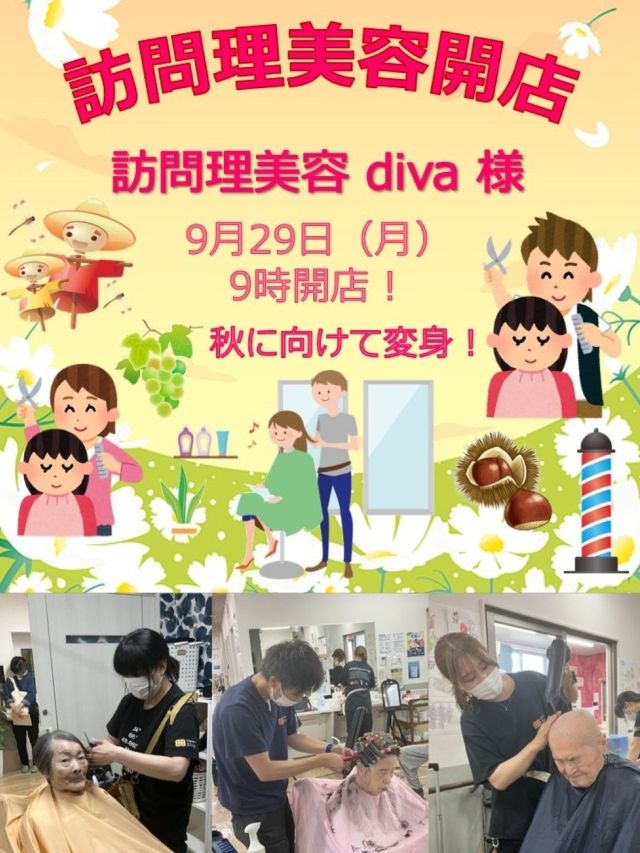 ようやく少し涼しくなってきた9月29日、訪問理美容diva様に来所頂き、秋向けの髪型にチェンジしていただきました。