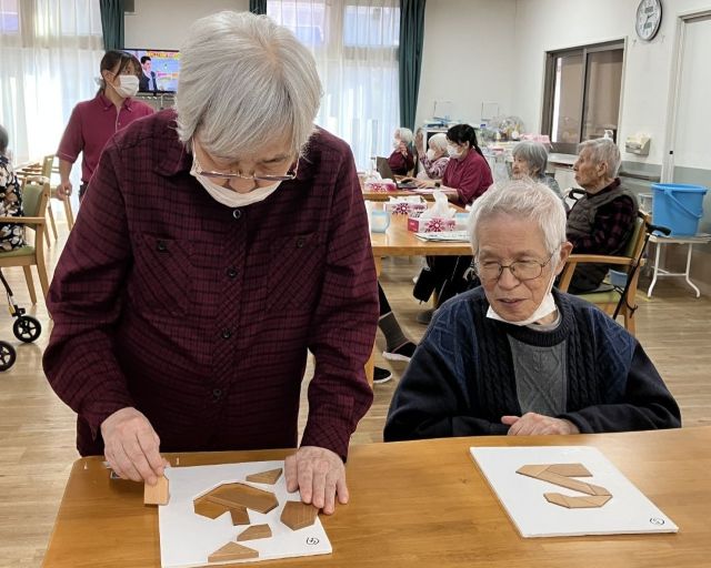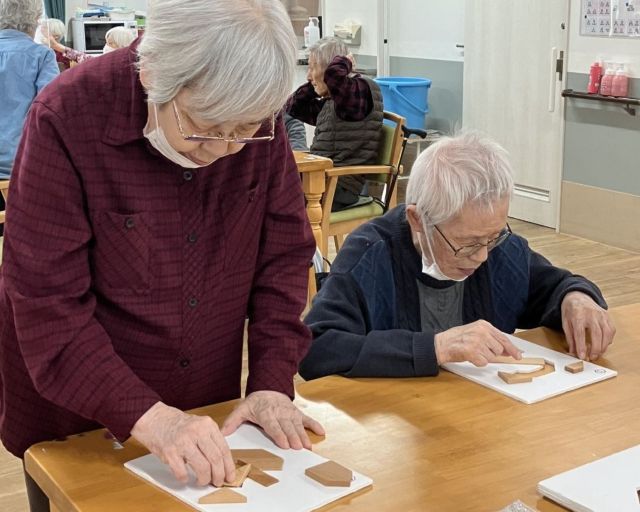 今日は2名の方が、かつのうパズルに取り組まれました。簡単そうで結構難しいんですよね。