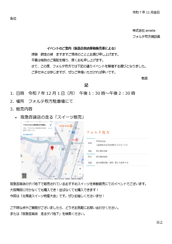 「阪急百貨店の走るスイーツ移動販売」来ます!!