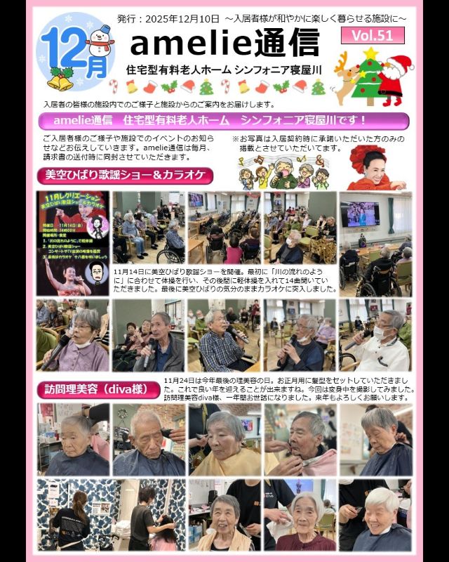 シンフォニア寝屋川のamelie通信12月号を掲載します。