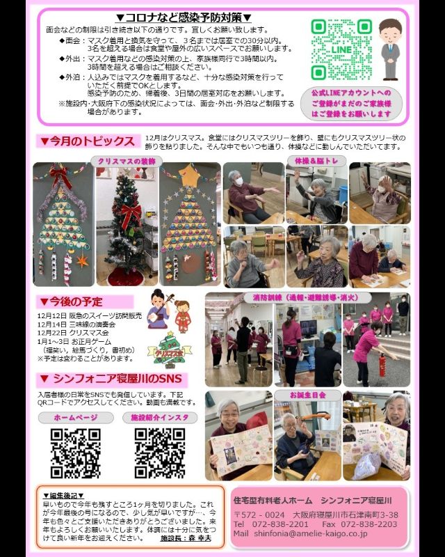 1年間、ご支援ありがとうございました。来年も入居者様のご様子や施設からの連絡など、しっかり掲載し発行したいと思います。