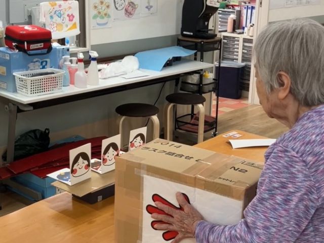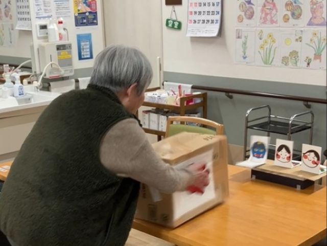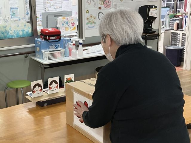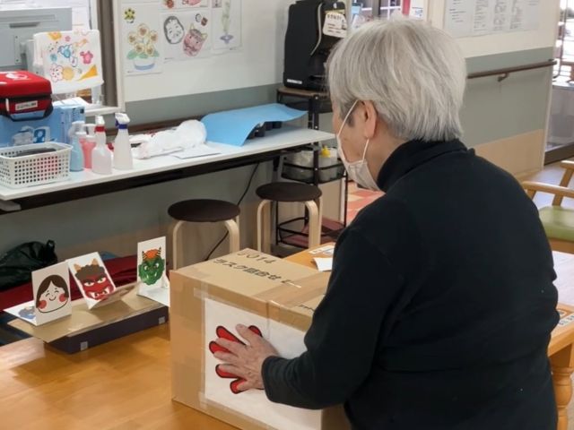 そして節分恒例のゲーム「空気砲で鬼退治」を今年も行いました。空気砲で「鬼」を倒せば「福さん」が現れるというものです。何度も使っているので、空気砲もだいぶ傷んできました。そろそろ新しいものを作らなければ…