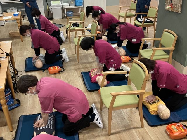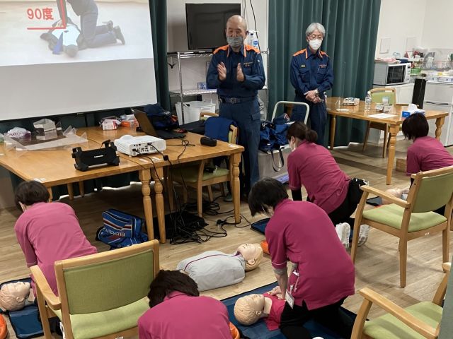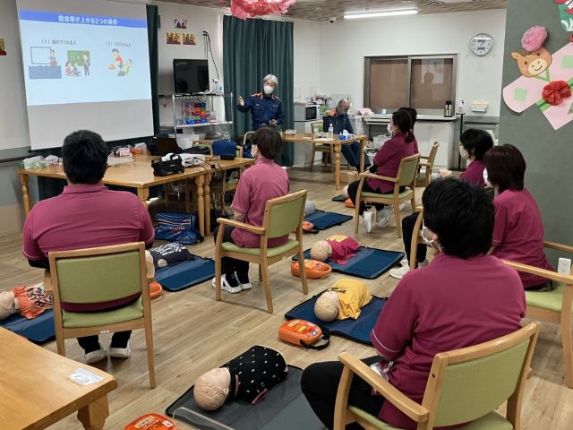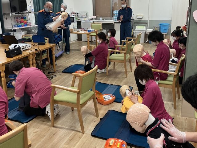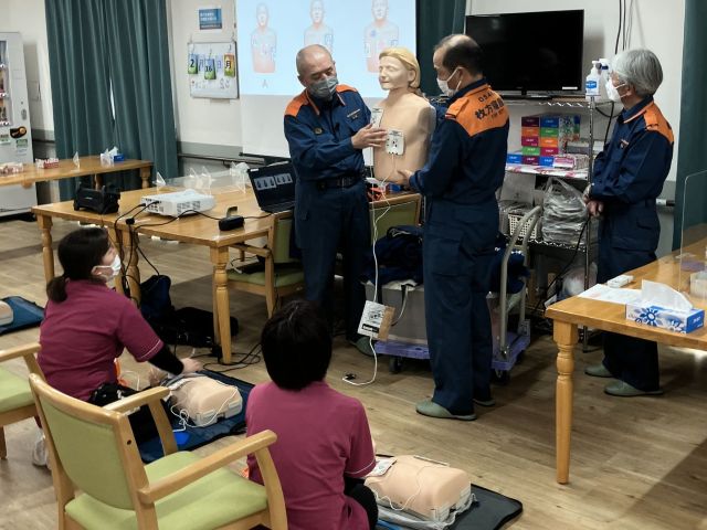 2月16日、シンフォニア寝屋川では救急救命の講習会を、枚方寝屋川消防署のご協力を得て開催しました。