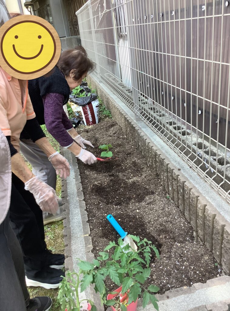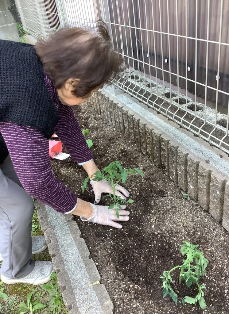 じゃがいもに引き続き~とまと、きゅうり、なすを植えていただきました!